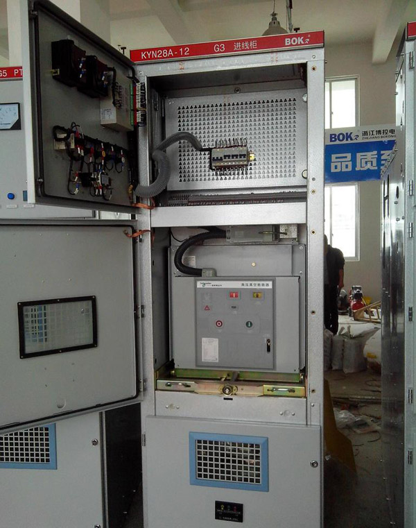 KYN28(GZS)型戶(hù)內(nèi)金屬鎧裝抽出式開(kāi)關(guān)設(shè)備(以下簡(jiǎn)稱(chēng)開(kāi)關(guān)設(shè)備)。該開(kāi)關(guān)設(shè)備系3-10KV三相交流50Hz單母線(xiàn)分段系統(tǒng)的成套配電裝置。主要用于發(fā)電廠、中小型發(fā)電機(jī)送電、工礦企事業(yè)配電以及電業(yè)系統(tǒng)的二次變電所的受電、送電及大型高壓電動(dòng)機(jī)起動(dòng)等,實(shí)行控制保護(hù)、監(jiān)測(cè)之用。具有防止帶負(fù)荷推拉斷路器手車(chē)、防止誤分合斷路器、防止接地開(kāi)關(guān)處在閉合位置時(shí)關(guān)合斷路器、防止誤入帶電隔室、防止在帶電時(shí)誤合接地開(kāi)關(guān)的聯(lián)鎖功能,既可配用VS1真空斷路器,也可配用ABB公司的VD4真空斷路器,是一種性能優(yōu)越的配電裝置。