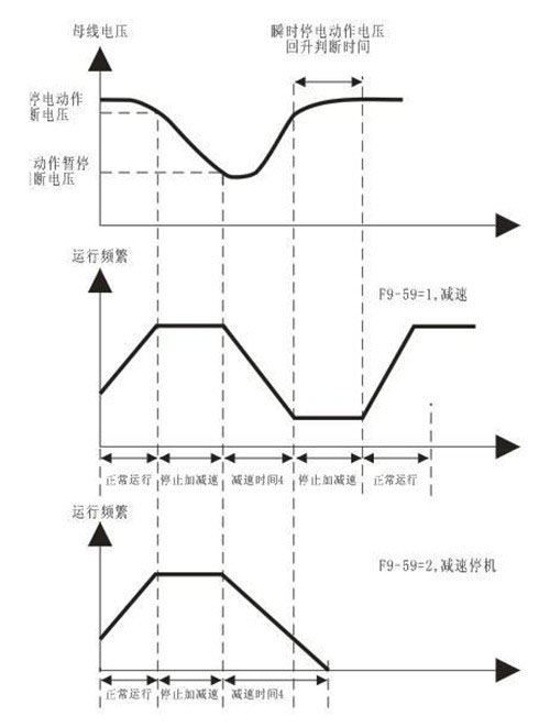 6.1此功能只在停電瞬間變頻器不會(huì)故障停機(jī),而是降低輸出頻率,通過(guò)負(fù)載回饋能量,補(bǔ)充電壓降低,以維持變頻器短時(shí)間內(nèi)繼續(xù)工作。